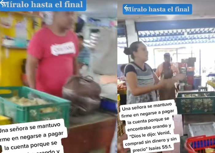 Para evitar la pelea, otra señora decidió pagar la cuenta que debía la mujer. Sin embargo, la mujer en lugar de agradecer se retiró del lugar gritando «Gloria a Dios, viste que yo te dije».