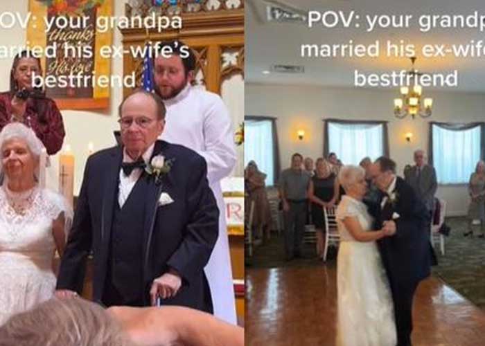 “POV: Tu abuelo se casa con la mejor amiga de su ex esposa”; escribió la joven el video. En el clip se ve a la novia caminando hacia el altar, después a ambos novios frente a un sacerdote y parte de la fiesta.