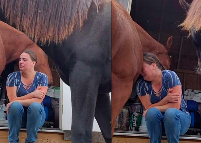 Se volvió viral en la plataforma TikTok el momento en que un caballo brinda consuelo a su cuidadora cuando ella comienza a llorar. Shania, encargada de cuidar caballos, se encuentra sentada en unas escaleras con una tristeza muy grande y con las lágrimas a punto de salir.