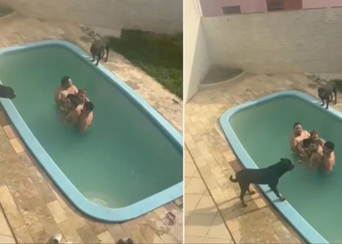 Al llegar y acomodarse en la propiedad, la familia se dirigió al área de la piscina para darse un relajante chapuzón; pero la situación tomó un giro inesperado cuando dos perros, que vivían en la casa, lograron escapar de su encierro y se dirigieron directamente hacia la piscina.