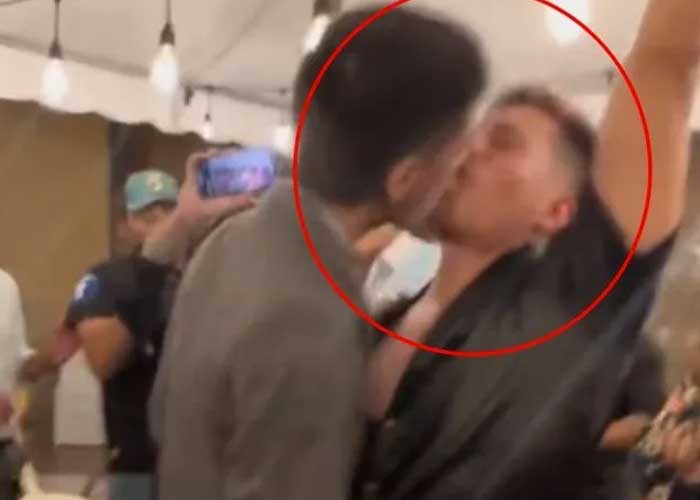 Tremendo escándalo se armó en una boda, luego que el esposo le fuera infiel a su pareja con otro hombre, al darse tremendo beso.