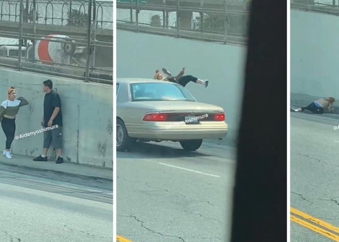 Es así que la mujer llamó la atención en redes, luego que se difundiera un video en el que se le ve arrojarse en la carretera donde pasan los automóviles en movimiento en California, Estados Unidos.