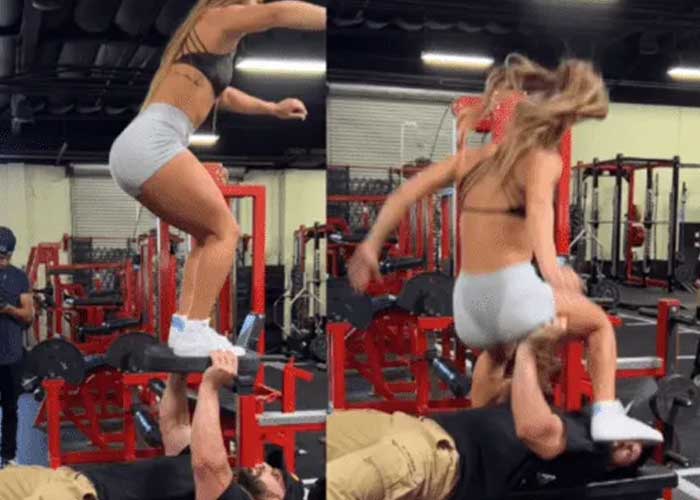 Así mismo, con este ejercicio, el entrenador intentaba trabaja sus bíceps y la mujer, glúteos y piernas. En otras palabras, los practicantes de esta disciplina, «querían matar dos pájaros de un solo tiro».