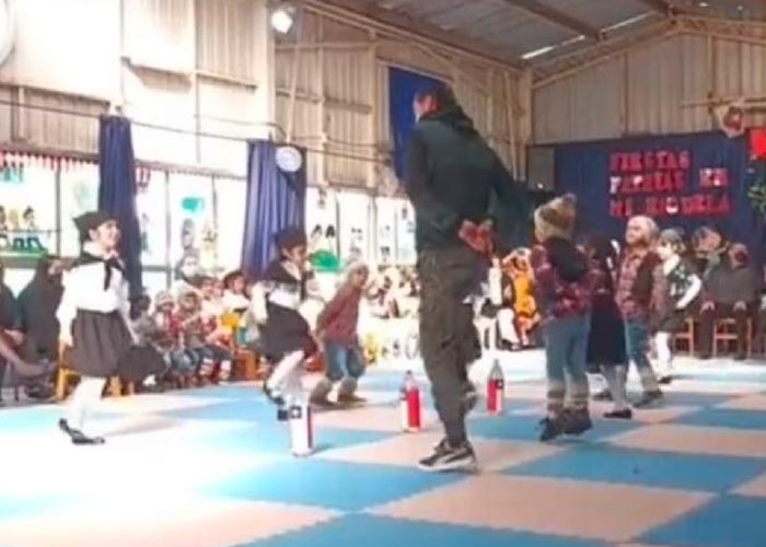 Todo ocurrió en una escuela primaria de Chile, donde un pequeño grupo de niños realizaban un baile frente a sus familias. Casi todos los alumnos bailaban con su pareja, a excepción de una niña que a pesar de no tener a su acompañante disfrutaba de la coreografía.