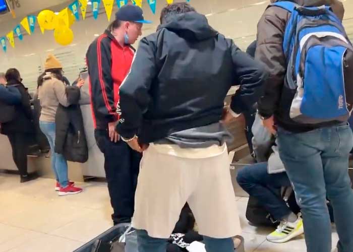 Las imágenes fueron captadas por Santiago Torre Walsh, un youtuber argentino que suele documentar sus viajes en un formato de blog. “Pasajero se va poniendo ropa para disminuir el peso de la valija en el check in. Ahora en Ezeiza. Vuelo a Bogotá”, dice el trino publicado por el viajero.