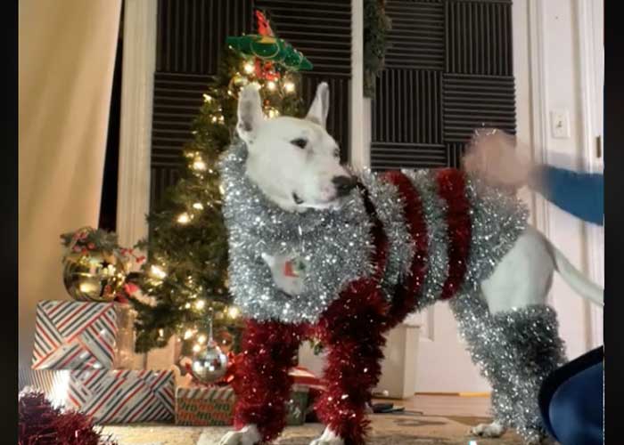 Algo muy común es decorar el interior y exterior de los hogares con luces o adornos y todo lo que pueda resaltar el espíritu navideño. Sin embargo, el usuario de TikTok @mistermainer se fue un poco más lejos que esto y decidió “adornar” a su mascota.