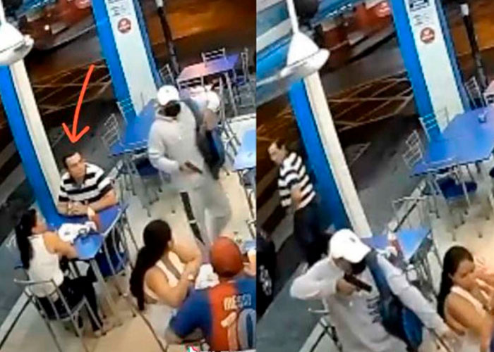 En la grabación se puede apreciar que el hombre comparte mesa con una mujer, con quien platica de manera amena, cuando de repente, al lugar arribó un delincuente armado y comenzó a amagar a los empleados y comensales para quitarles sus pertenencias.