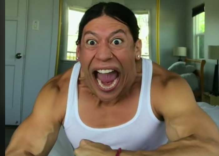 Pues ahora este joven, quien vive aparentemente en Los Angeles, Estados Unidos; hace la mímica de esta frase junto con una música intensa, mientras hace unas poses desafiantes pero divertidas a la vez. ¡Ah! Y ese grito del final es la cereza del pastel.