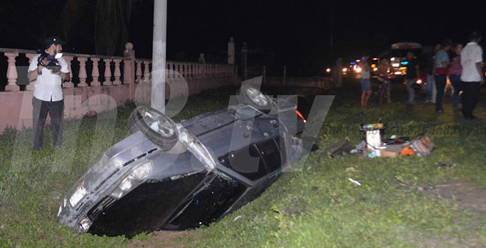 Según testigos dijeron a la policía que el responsable del accidente fue el conductor de un microbús color azul con placa Chinandega que intentaba aventajar pero este quiso volver al carril y terminó impactando por la parte trasera del carro.