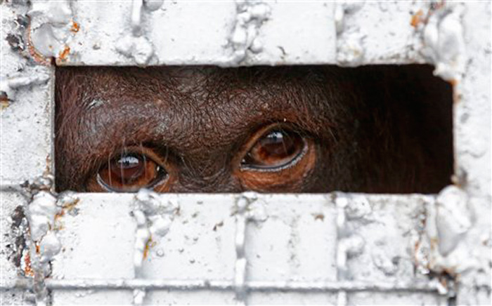 Indonesia envió un avión C-130 de la Fuerza Aérea para trasladar a los simios, cada uno en una jaula de metal, en un vuelo de cinco horas de Bangkok a Yakarta, la capital indonesia.