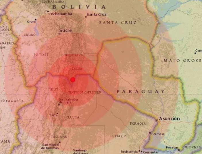 El epicentro del temblor se ubicó a 33,4 kilómetros de profundidad, a 47 kilómetros de la localidad de Abapó en el departamento de Santa Cruz.