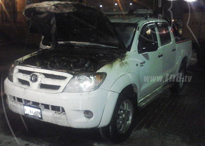 Un cortocircuito en la corriente de la batería fue el aparente detonante para que una camioneta se prendiera en llamas en el kilómetro 7 y medio de la carretera a Masaya.