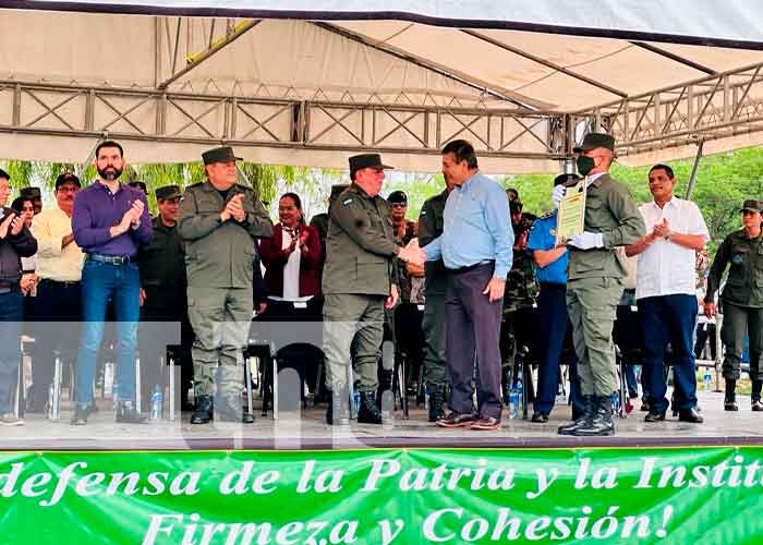 El General Julio César Aviléz, Jefe del Ejército de Nicaragua, expresó su agradecimiento a todos los asistentes a este acto central, destacando que esto representa un respaldo al trabajo que ellos han estado realizando en las comunidades.