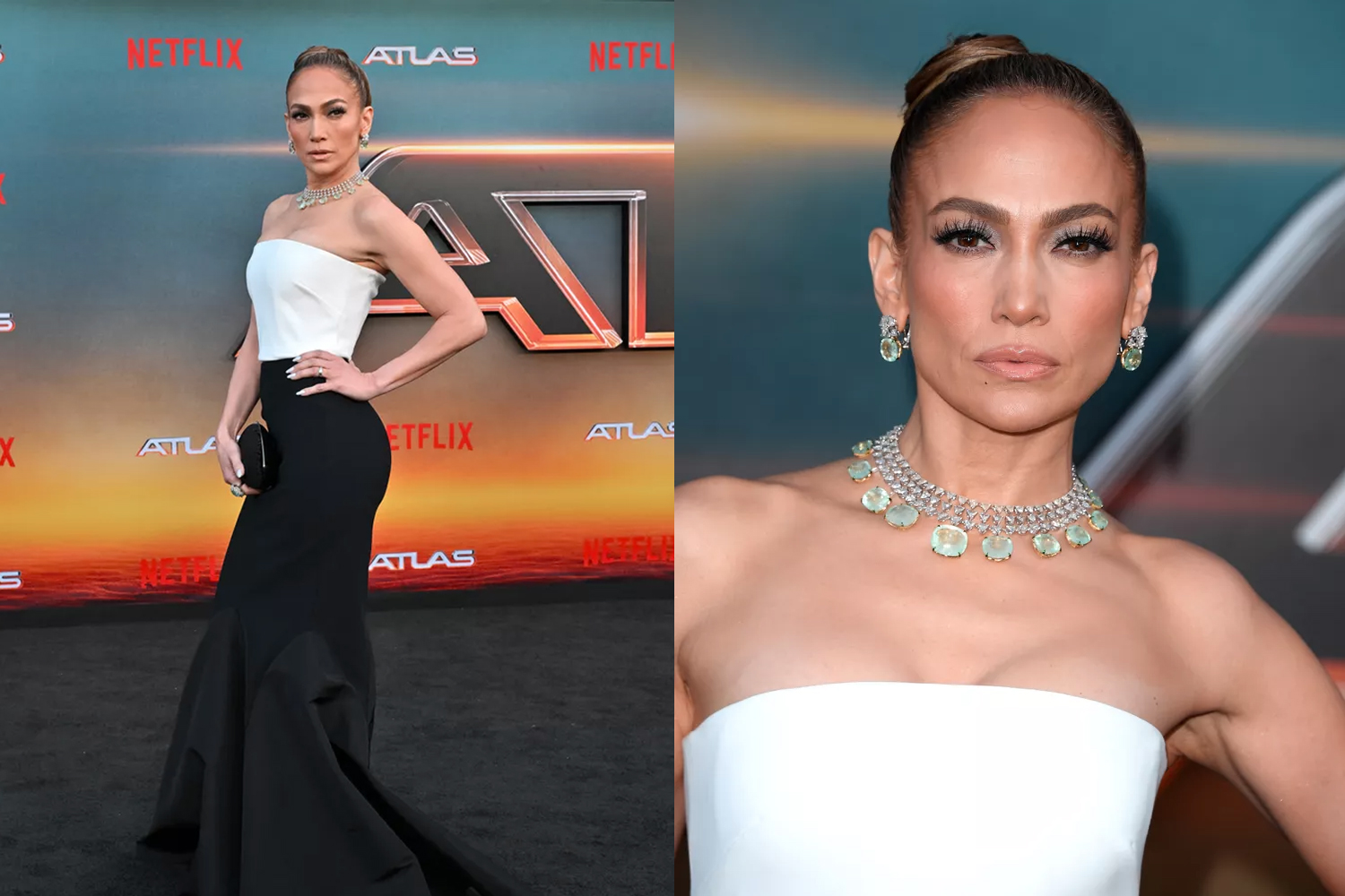 Para aumentar aún más los rumores, Jennifer López asistió sola al estreno de su película «Atlas» en Los Ángeles, sin la presencia de su esposo. Durante el estreno de su nueva película para Netflix, la multifacética artista ha desatado cientos de comentarios relativos a su delgadez. La Diva del Bronx posó en la alfombra roja con un conjunto de corsé blanco y una falda negra de silueta sirena de Greta Constantine, que se ajustaba a su figura como un guante, resaltando su esbeltez.