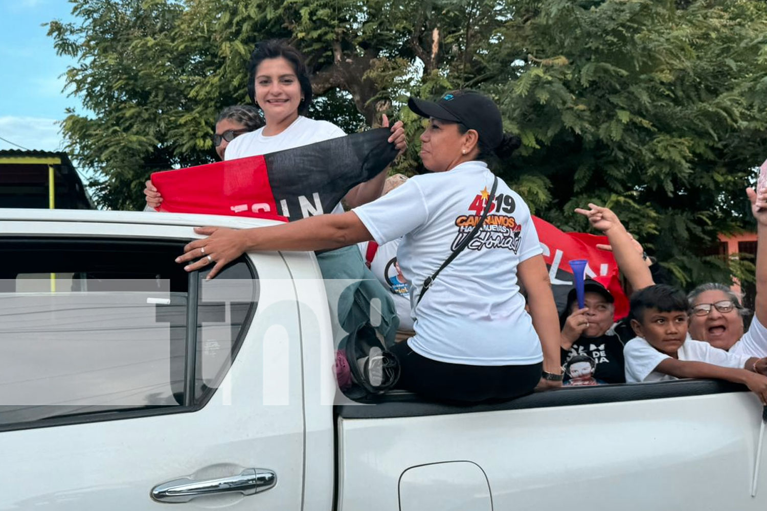 En caponeras, motocicletas y vehículos, los participantes ondearon las banderas rojinegra y azul, blanco y azul, creando un ambiente festivo y patriótico. La unión de diferentes sectores de la sociedad resaltó la importancia de esta conmemoración para todos los nicaragüenses.