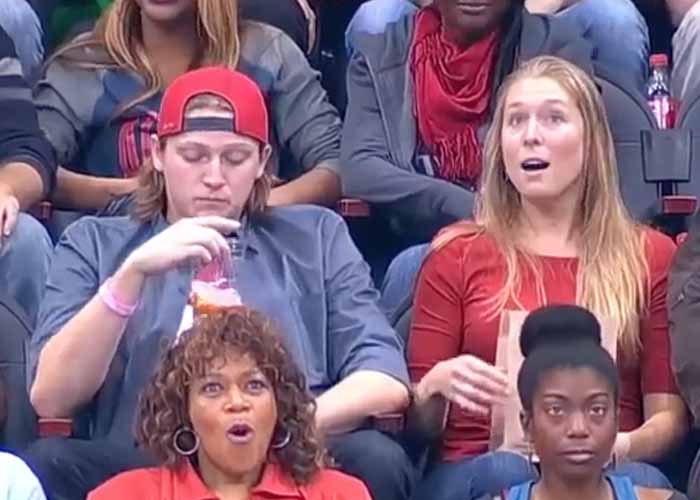 Las escenas de la "kiss cam" durante los partidos de la NBA suelen ser muy divertidos, sobre todo cuando los protagonistas tienen reacciones inesperadas.