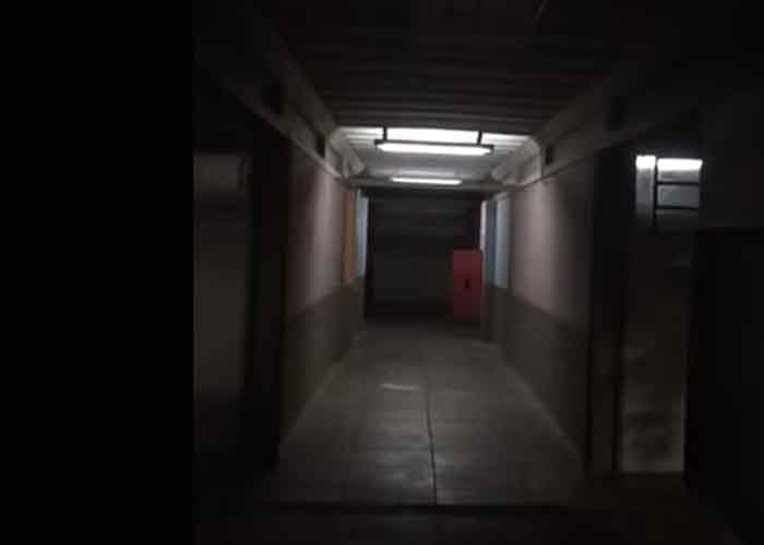 En las imágenes se observa al cuidador transitar por una pasadizo de la morgue durante su turno, mientras las luces parpadean. De pronto, una puerta empieza a abrirse y cerrarse con tal fuerza, con si alguien molesto no quisiera que este en el lugar.