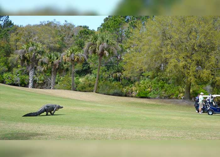 Un cocodrilo "de grandes dimensiones" irrumpió en un campo del golf esta semana en Carolina del Sur (EE.UU.) mientras se disputaba un torneo benéfico organizado por el hospital Barrier Islands Free Medical Clinic para sufragar los tratamientos de personas con pocos recursos.