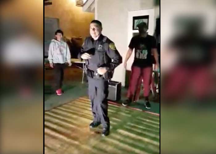 El oficial había llegado a detener la fiesta que ocasionaba mucho ruido en el vecindario, pero terminó quedándose y enseñó a varios niños a bailar salsa, dijo Leslie en la red social.