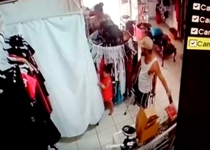 Aparentemente, la tienda es de la capital llamada Kiara Glam Collection y en el video que ya se está difundiendo en las redes sociales se muestra al sujeto entrar acompañado de un niño y sujetado por unas muletas, en el local se encuentran dos mujeres viendo la ropa que había en un perchero y en cuestión de tiempo el mañoso identifica una tablet que está en una vitrina y la esconde en el short que llevaba puesto.