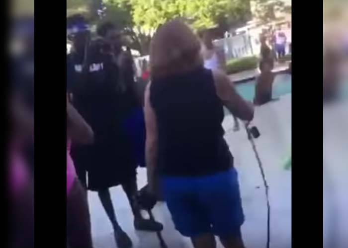 En un video que circula en redes sociales se muestra a la anciana en ropa deportiva, que paseaba a sus perros y que se dirigió a los jóvenes afrodescendientes que disfrutaban de una fiesta de piscina (pool party).