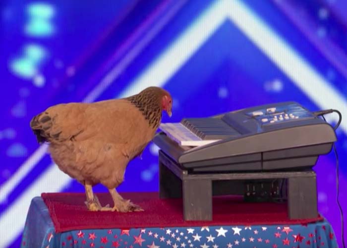 Al principio, el animal se mostró desinteresado en el instrumento, por lo que el público alcanzó a abuchearla por un instante. Incluso el jurado, conformado por Simon Cowell, Mel B, Heidi Klum y Howie Mandel, se vio escéptico ante el talento de la gallina.
