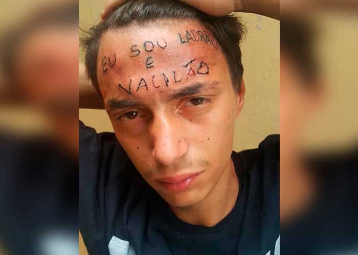 ¿Para qué? Pues, muy sencillo. El artista intenta hacerle un tatuaje en la frente, quizá para que luego sea fácilmente identificado como un ratero. El video de YouTube se corta en el instante que comenzaría la improvisada sesión.