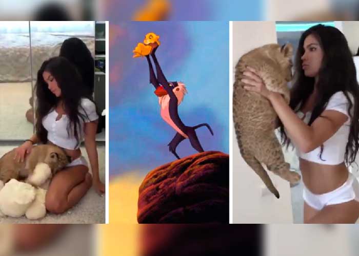 En redes circula un video donde la joven presume de una escultural figura en ropa interior, pero también a su león cachorro, con el que pretendía cautivar a los usuarios con su "sexy" idea.
