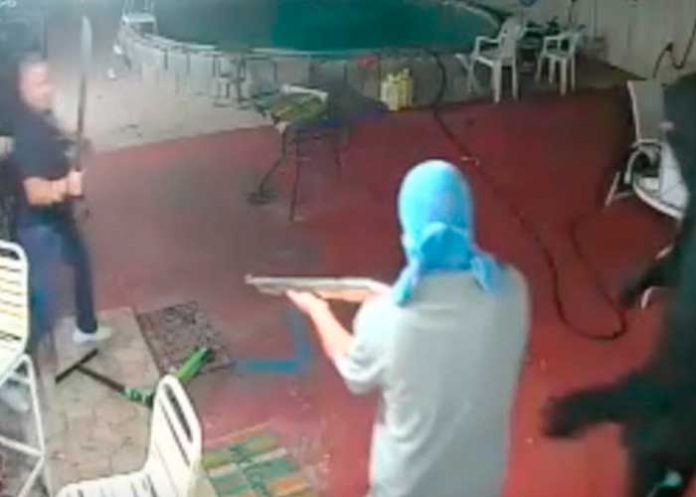Cinco personas han sido detenidas tras un intento de robo que se produjo en un domicilio de Saratosa (Florida, EE.UU.) el pasado jueves. La Policía ha difundido la grabación, en la que se ve al propietario de la casa haciendo frente con un machete a los intrusos, que están armados con una escopeta.