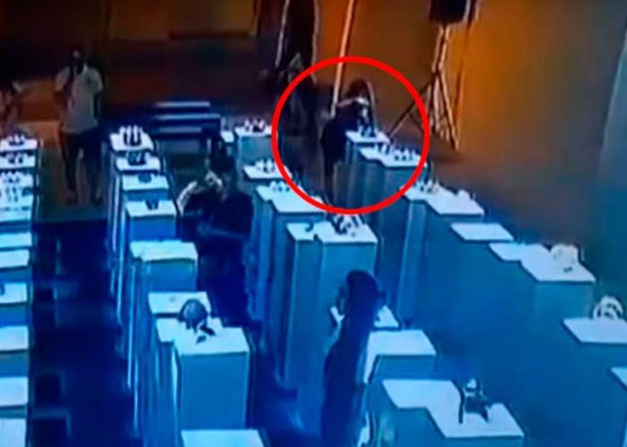 Según se puede observar en las imágenes, grabadas por una cámara de seguridad y luego subidas a YouTube, una mujer intenta tomarse un selfie delante de una de las coronas, sin imaginar que todo terminaría en una verdadera tragedia (para el artista).