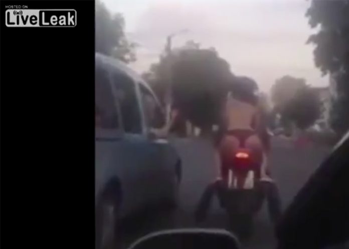 La rubia que solo llevaba puesta una tanga de color negro y transitaba sin sostén en una motocicleta en compañía de otro joven, accedió a la petición de sus pretendientes.