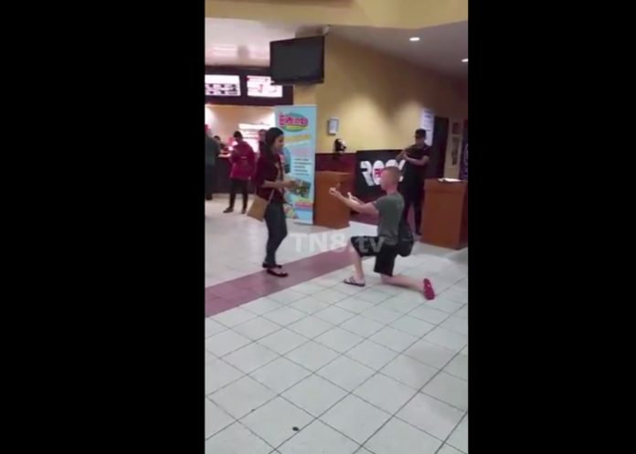 Mientras muchos esperaban para entrar a disfrutar de la Premier de la película de miedo Amityville, gracias a la rifa de entradas realizadas por TN8, un joven extranjero sorprendió con un hermoso anillo brillante para su prometida en plena noche de miércoles antes de entrar a la sala de cine en Cinemark Metrocentro, ubicado en Managua.