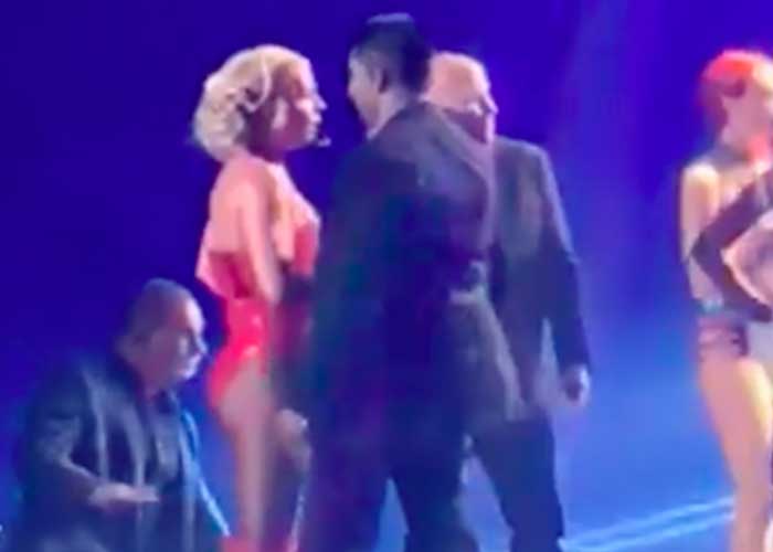 La intérprete Britney Spears, de 36 años, se llevó el susto de su vida después de que un hombre subiera al escenario durante el reciente concierto que ofreció en Las Vegas, Nevada.