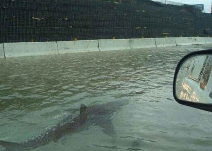Believe it or not, this is a shark on the freeway in Houston, Texas. #HurricaneHarvy pic.twitter.com/ANkEiEQ3Y6