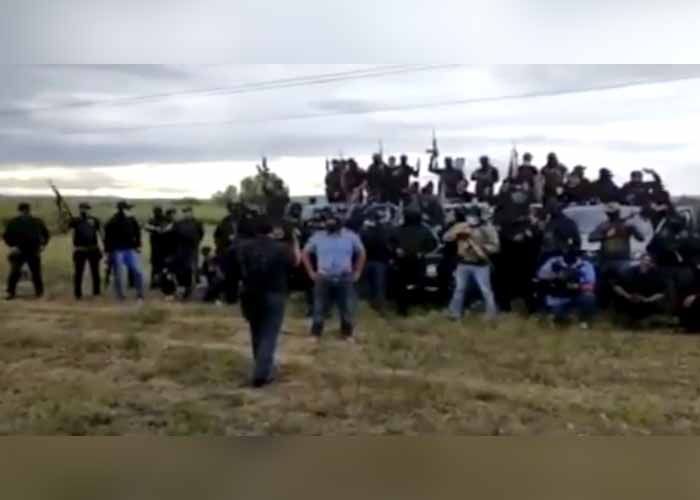 El video, que ha comenzado a difundirse masivamente, fue grabado en un llano. Asimismo, deja ver a decenas de hombres vestidos con uniforme tipo militar, muchos de ellos con el rostro cubierto y con armas largas
