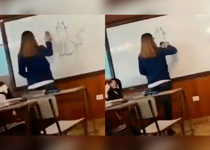 Profesora borra gato dibujado en la pizarra y se lleva tremenda sorpresa (VIDEO)