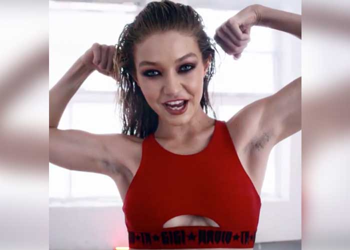 Gigi aparece en el video de la sesión de fotos que realizó para el mencionado anuario, luciendo unas axilas aparentemente sin depilar, en otras palabras, peludas.
