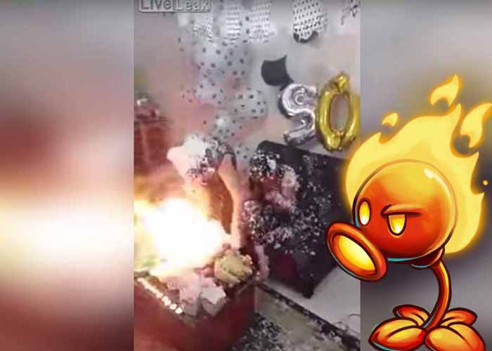 Como se puede apreciar en el material, a la cumpleañera y la amiga que sostenía la torta le rosearon espuma en aerosol, y debido a ser inflamable, generó que las llamas de fuego las envuelva.