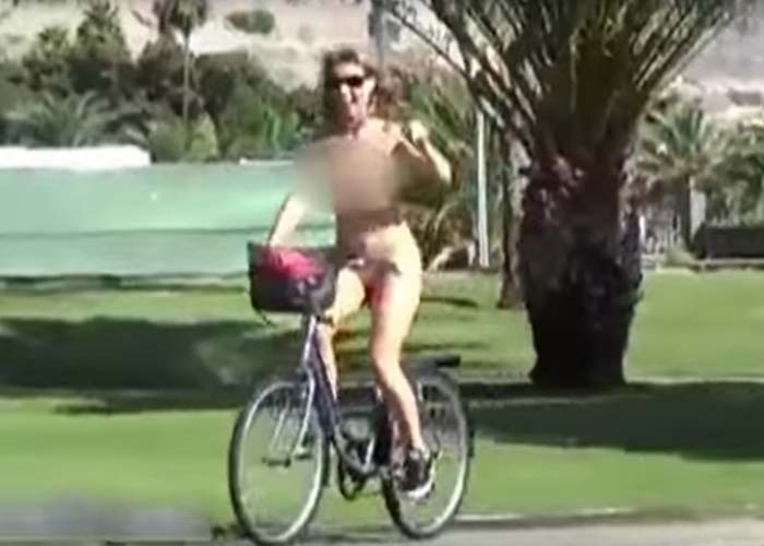 Una actriz porno fue captada paseando desnuda en bicicleta por las calles de España, a plena luz del día y a la vista de todos. El caso se ha difundido a través de YouTube.