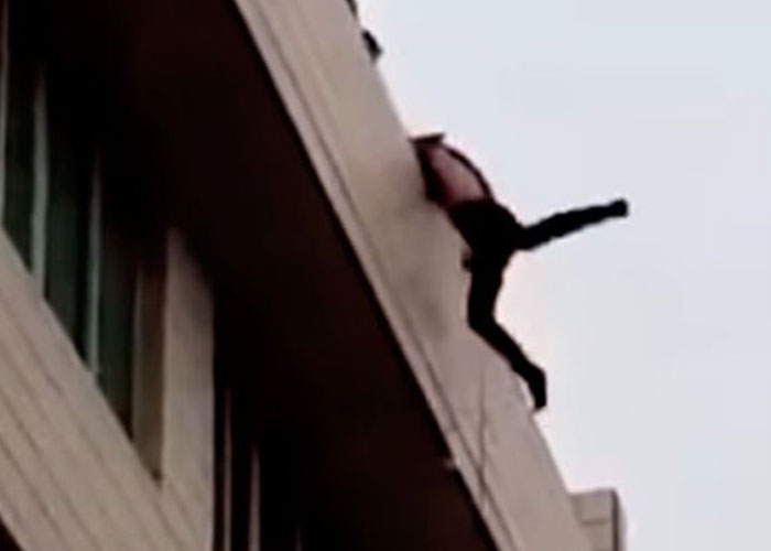 De acuerdo con LiveLeak, el incidente se produjo en la ciudad de Wenzhou, en la provincia de Zhejiang, al este de China. El desesperado hombre trató de quitarse la vida, para lo cual subió hasta la azotea de un edifico de varios pisos con la intención de saltar desde allí.