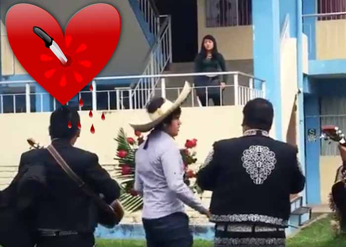 Un joven llevó mariachis para reconquitar a su novia, pero esta lo rechazó delante de todos los estudiantes de la Facultad de Ciencias de la Salud de la Universidad Nacional de Cajamarca, en Perú.