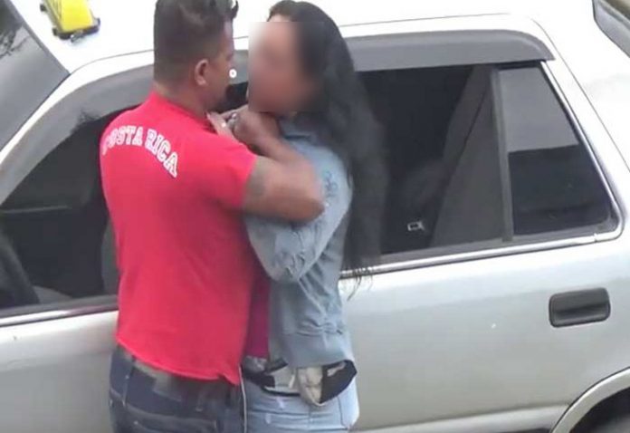 El hombre decide irse en el taxi placa M 225 578, en el que aparentemente anda laborando, y la mujer en su motocicleta