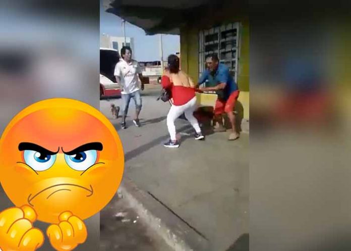 De inmediato el señor en un arranque de celos golpeó al amante de su esposa y no contento con eso, fue hacia ella para reclamarle y desnudarla en plena calle.
