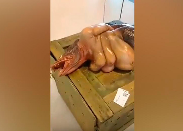 En imágenes se puede ver una extraña criatura. El título del clip de YouTube dice: “mitad pez, mitad humano”. Y realmente así se observa, la cabeza de pez está presente en un cuerpo con brazos y cola irreal.