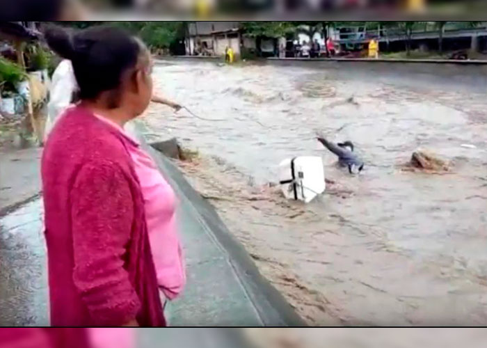 Al principio el hombre intentó salvarse con la ayuda de una cuerda que le lanzó un rescatista, pero no pudo sujetarla. Arrastrado por la corriente, fue rescatado cuando se encontró con un puente, desde el cual le arrojaron otra cuerda y lo levantaron.
