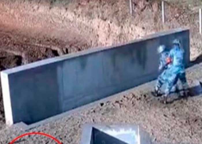 Como podrás apreciar en las imágenes, que han generado todo tipo de comentarios en YouTube, el cadete calcula mal y en vez de tirar la granada lejos de ellos, la lanza con tan poca fuerza que el artefacto explosivo choca contra el muro, a pocos metros de ellos.