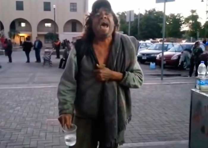 Como lo muestran las imágenes de YouTube, el vagabundo se percata que lo están grabando y decide cantar una canción de Juan Gabriel mientras se acercaba a la persona que tenía la cámara.