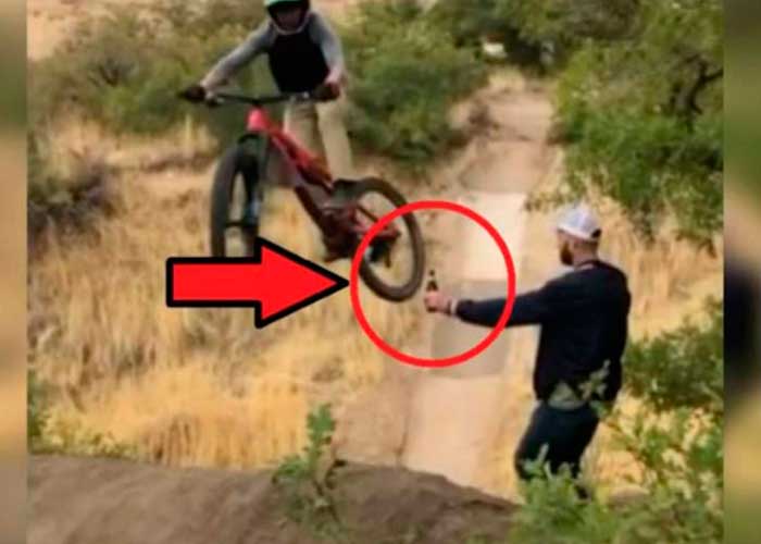 A últimas horas en las redes sociales y WhatsApp se compartió masivamente un video de un motociclista abriendo una botella con la llanta en plena acrobacia.