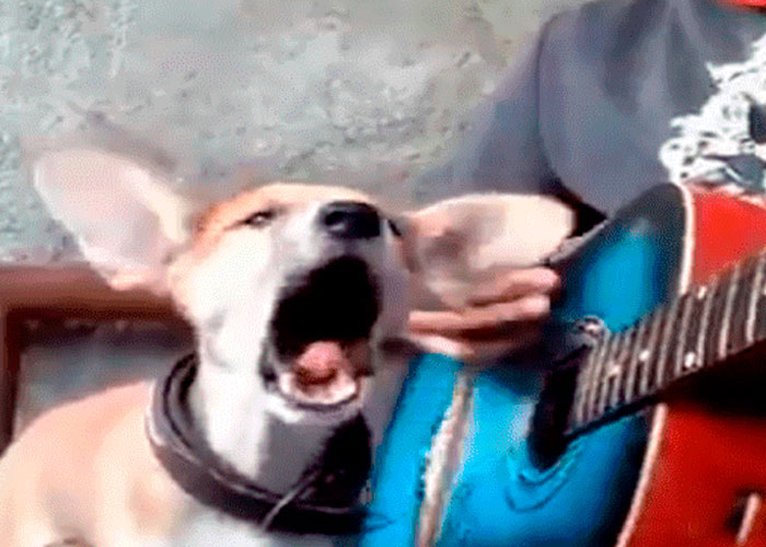 Por un momento, parece que el perro canta una canción, de una manera entonada; mientras su dueño toca la guitarra y lo acompaña. Tal como se observa en el video de Facebook, el tierno animal mueve su cabeza y hocico.