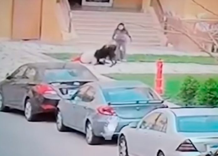 Una cámara de seguridad captó esta semana en el barrio de Madinaty, en El Cairo (Egipto), el angustioso momento en el que una mujer salva a un niño que estaba siendo atacado por dos perros peligrosos, echándose sobre el menor.